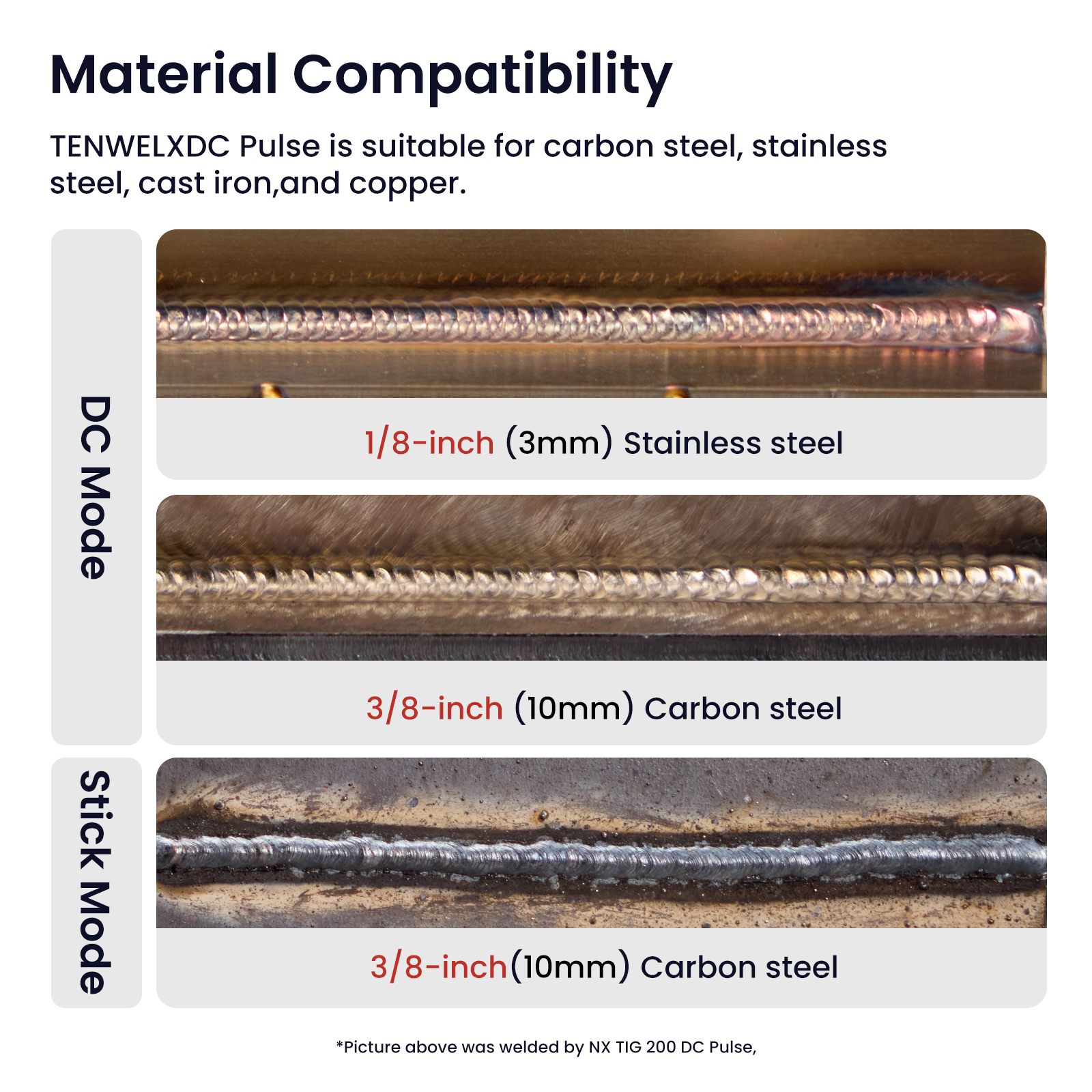 The TENWELX NX Series TIG 200 DC Pulse is a compact, air-cooled TIG/Stick inverter designed for precise DC welding applications. It delivers stable arc performance, accurate output control, and high efficiency for both professional and hobby fabrication tasks .